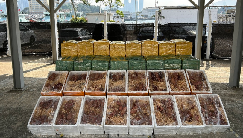 香港海关表示,昨日(10日)在大屿山大澳一带进行反走私行动,侦破一宗涉嫌利用快艇走私的案件,检获约3100公斤怀疑走私龙虾,估计市值约124万元。
