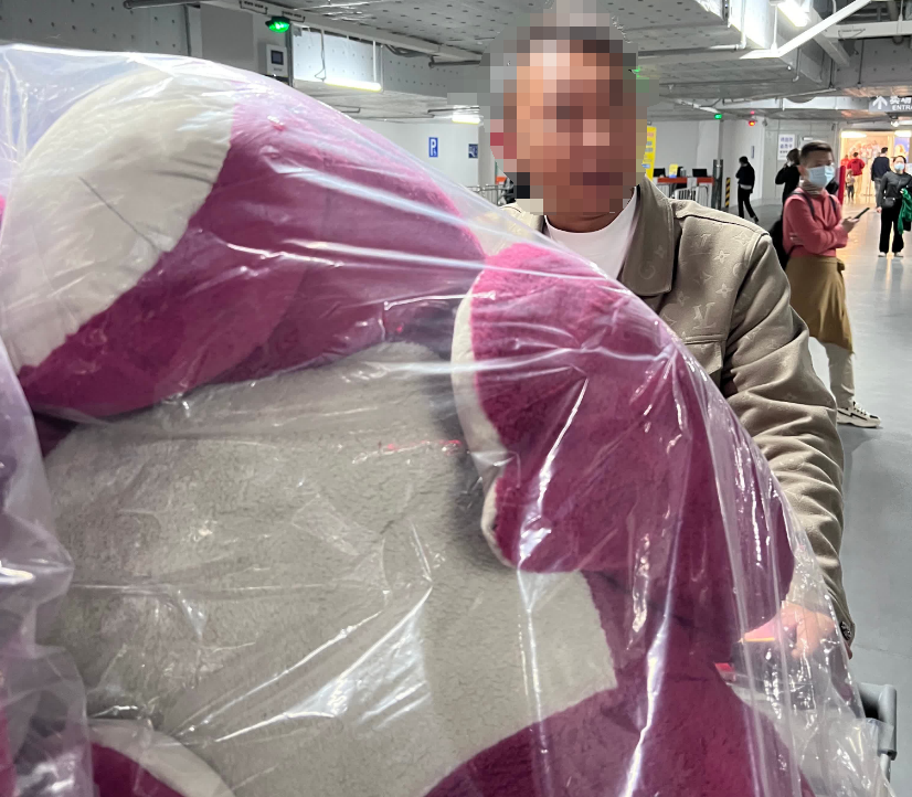 曲先生表示,今天来就是为了抢草莓熊给自家孩子,别的东西都没怎麽买。(点新闻记者林奕彤摄)