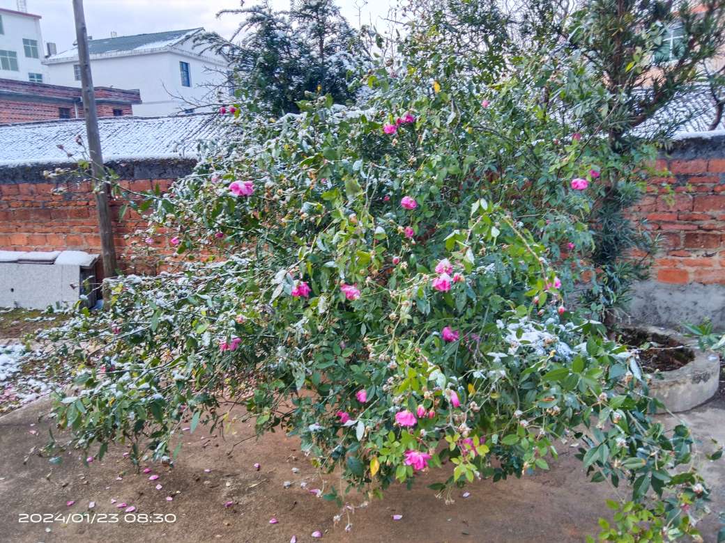 大雪过后,我家的小院子仿佛变成了一个冰雪世界。竹子被厚厚的积雪压弯了腰,仿佛在向冬天低头认输。我家的月月红也被雪花覆盖,只剩下红彤彤的枝条在风中摇曳。门口的枇杷树上也铺满了厚厚的雪,仿佛给它们穿上了一件白色的羽绒服。