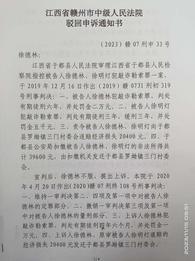 罕见!江西赣州驳回申诉通知书竟无主审人员签名,司法公正备受质疑