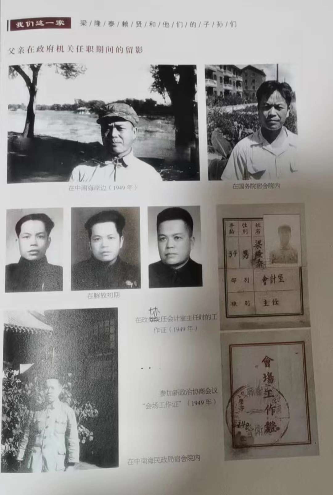 梁华京一直保存着父亲梁隆泰当年参加新政治协商会议会场工作证和在政协任会计主任时的工作证……