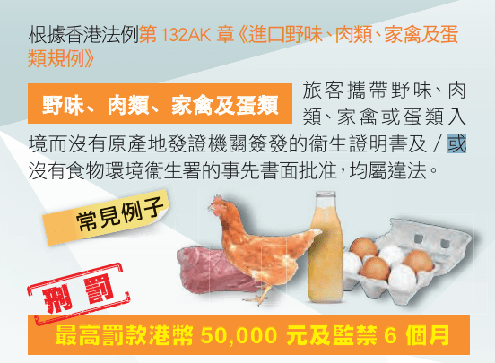 - 生肉、鸡蛋绝对不能带!根据香港法律,没有食环署批准的野味、家禽、蛋类,带入境就是违法。
