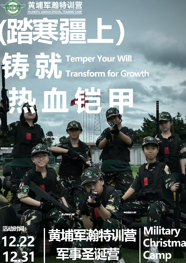 叮!你的圣诞专属成长邀请函已送达 这个冬天,让娃告别懒散、远离电子设备,在黄埔军事圣诞营中,身披迷彩、心怀热血,度过一个充满意义与惊喜的圣诞假期,变身独立、勇敢、自律的阳光小军人!