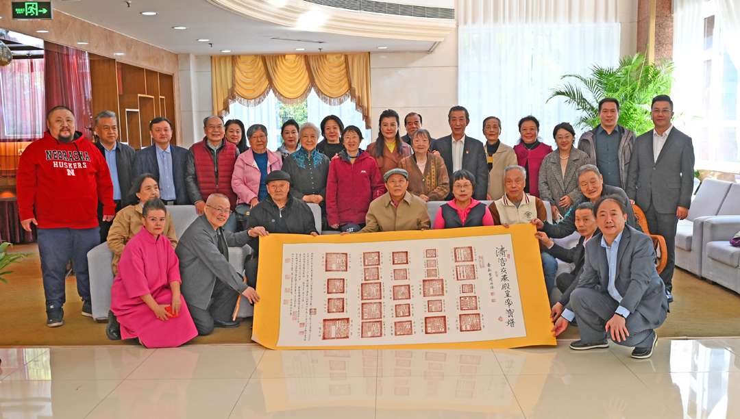 香港学者梁华京先生向万伯翱、刘歌及校友们赠送清代皇帝二十五宝总谱全图。