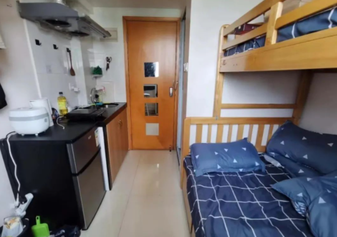 8~9平米,还是上下铺。香港的居住环境要告诉大家,少在家里躺尸,多多去图书馆看书!