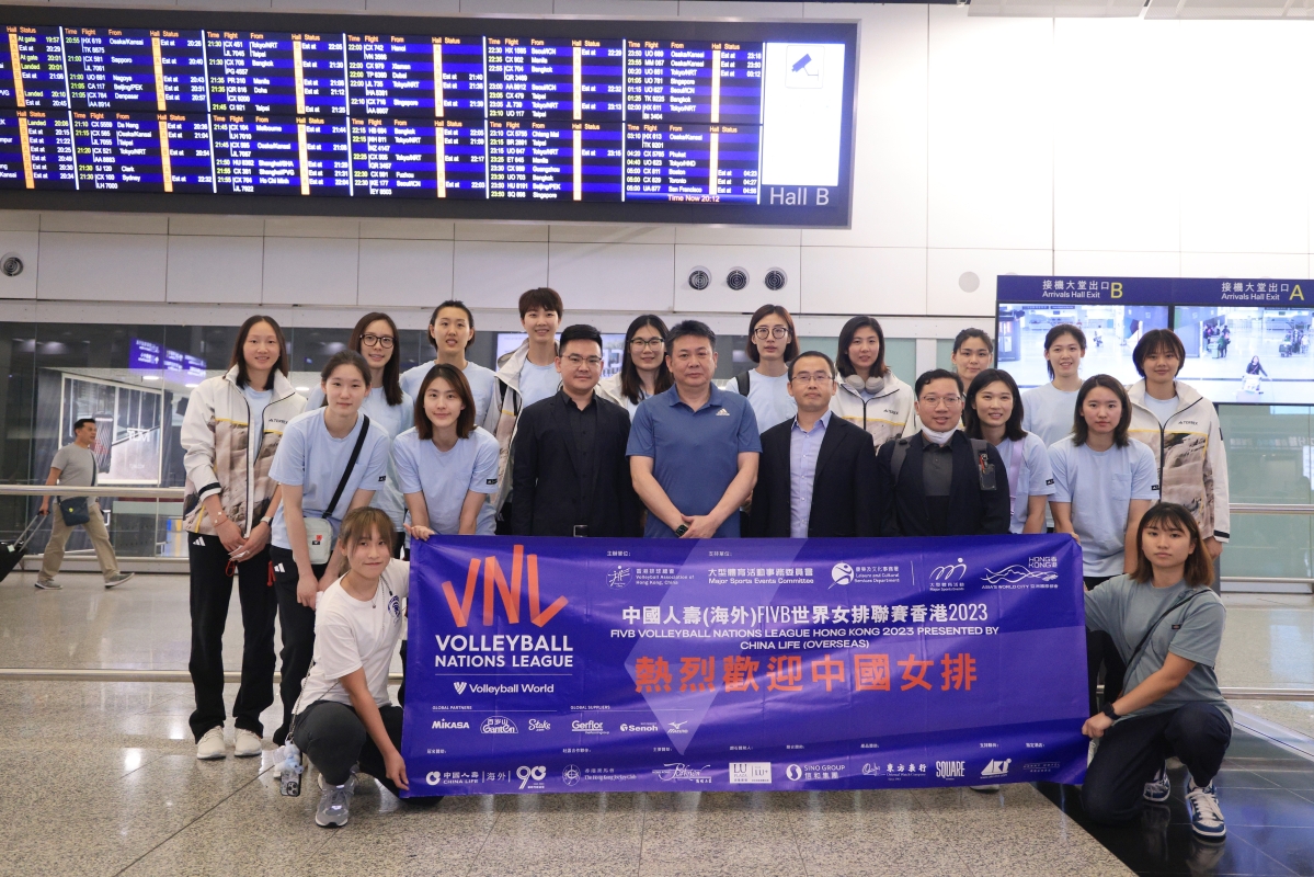 6月6日晚,中国国家女子排球队抵达香港国际机场,备战FIVB世界女排联赛香港站。当晚约8时10分,队员和教练组推着行李从接机大堂走出,有不少亲友球迷和传媒迎接,队员表现轻松愉快,并在接机大堂留下合影。