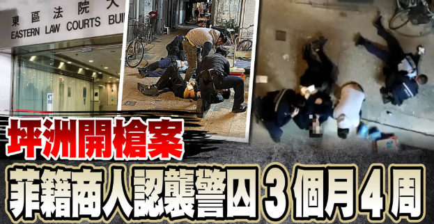 警方今年初奉召到坪洲永安街处理一宗噪音滋扰投诉时,菲律宾籍男商人因情绪激动及连番袭警,被警员连开3枪致手部及腹部受伤送院。涉案男商人昨日在东区裁判法院承认两项袭警罪,被判囚3个月4星期。同案另一菲律宾籍男子亦涉当日阻差办公和袭警,但获控方撤控,准以自签2,000元、守行为3年处理。