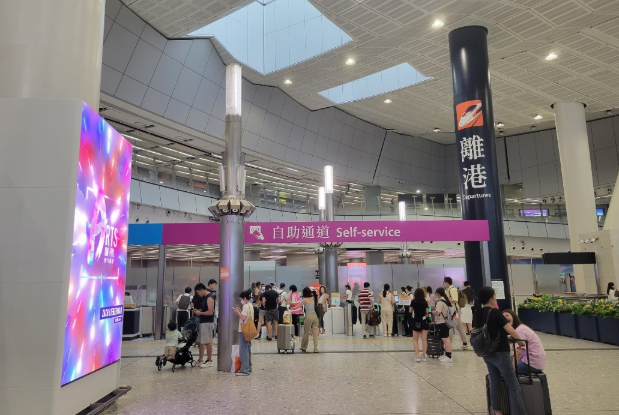 香港天文台17日发出今年首个八号风球,不少交通出行工具受影响,或暂停运营或延长班次间隔时间。香港中通社记者当天在西九龙高铁站看到,高铁运行未受影响,市民正常出行。