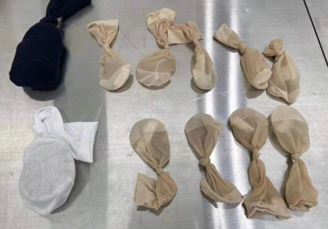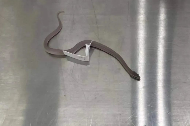 日前,皇岗海关关员在福田口岸发现一名进境旅客过关时步履匆忙、眼神躲闪,随即对该名旅客进行拦截检查。经检查,在其裤袋中查获用棉袜及丝袜包裹的活体蛇14条。目前,该批活体蛇已移交相关部门处理。