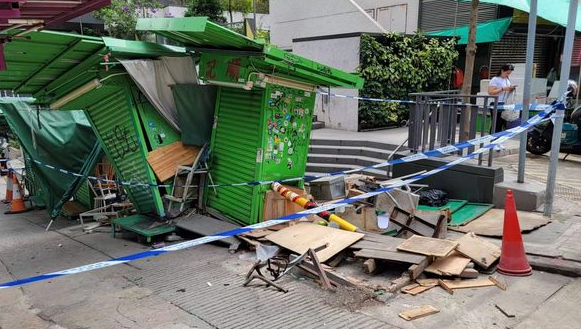 今年4月底,中环卑利街与结志街交界处发生一宗货车撞毁排档的交通意外。事缘一辆货车从卑利街意外溜后,其尾部更撞毁了附近的两个牌档,涉事牌档损毁非常严重,内部结构面目全非,电缆外露更构成即时危险。事发后,立法会议员周文港及社区发展主任彭舜玟迅即赶往现场,联络食环署、港灯等善后,并帮助重建。