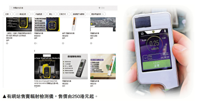 大公报记者昨日通过拍卖网站,联络到其中一位有售卖辐射探测仪的卖家,他说,“这几天每天都有起码十来个客人问价”,但未有实际交易。卖家表示,早前亦购买两款价格相差600元左右的核辐射检测仪,但实际对海产、农产品进行测试后,暂未录得有效数字,遂放到网站卖出。