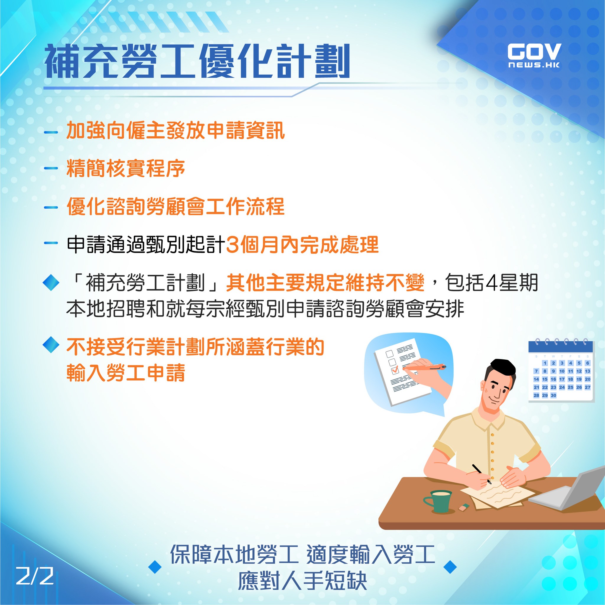 推行上述优化措施后,劳工处会致力在3个月内完成处理“补充劳工优化计划”下通过甄别的申请。
