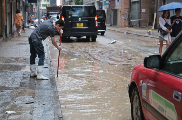 9月8日,香港遭遇自有纪录以来最大暴雨,天文台昨晚(7日)11时05分发出今年首个黑色暴雨警告信号,至今早(8日)仍然维持。 特区政府今早启动“极端情况”安排,指香港出现广泛地区水浸,以及公共交通严重受阻的极端情况,所有日校今日停课。 同时提醒雇主,除必要人员外,不应要求雇员返回工作地点上班。截止当天早上7时,接获44宗水浸报告。多区的道路都出现水浸。