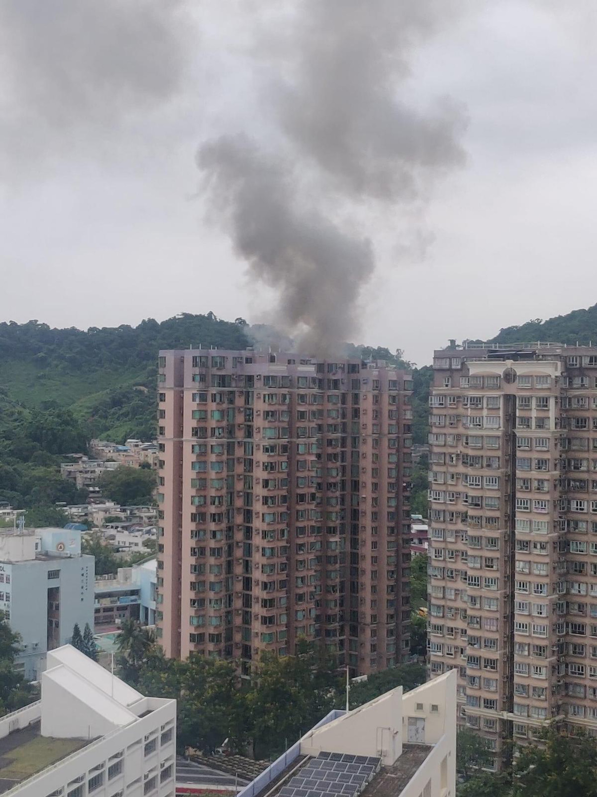 消防接报出动一条喉及一队烟帽队到场扑救,约半小时后将火救熄,共疏散约100人,有二人吸入浓烟不适送院,火警起因有待调查。