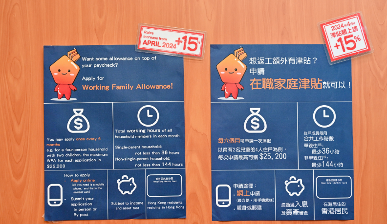 今年施政报告宣布,由2024年4月起计的申领月份,划一增加职津计划住户及儿童津贴金额15%。曾裕彤说:“这有助进一步纾缓基层在职家庭的负担,并支援他们育儿;同时鼓励持续全职工作、自力更生,促进这些家庭的劳动力投入劳动市场。”