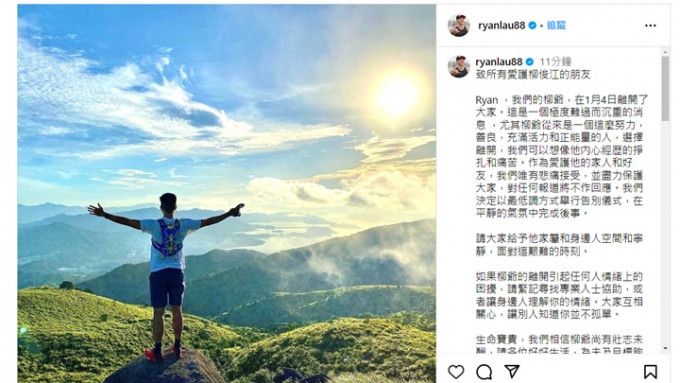 Ryan,我们的柳爷,在1月4日离开了大家。这是一个极度难过而沉重的消息 ,尤其柳爷从来是一个这麽努力,善良,充满活力和正能量的人,选择离开,我们可以想像他内心经历的挣扎和痛苦。作为爱护他的家人和好友,我们唯有悲痛接受,并尽力保护大家,对任何报道将不作回应。我们决定以最低调方式举行告别仪式,在平静的气氛中完成后事。