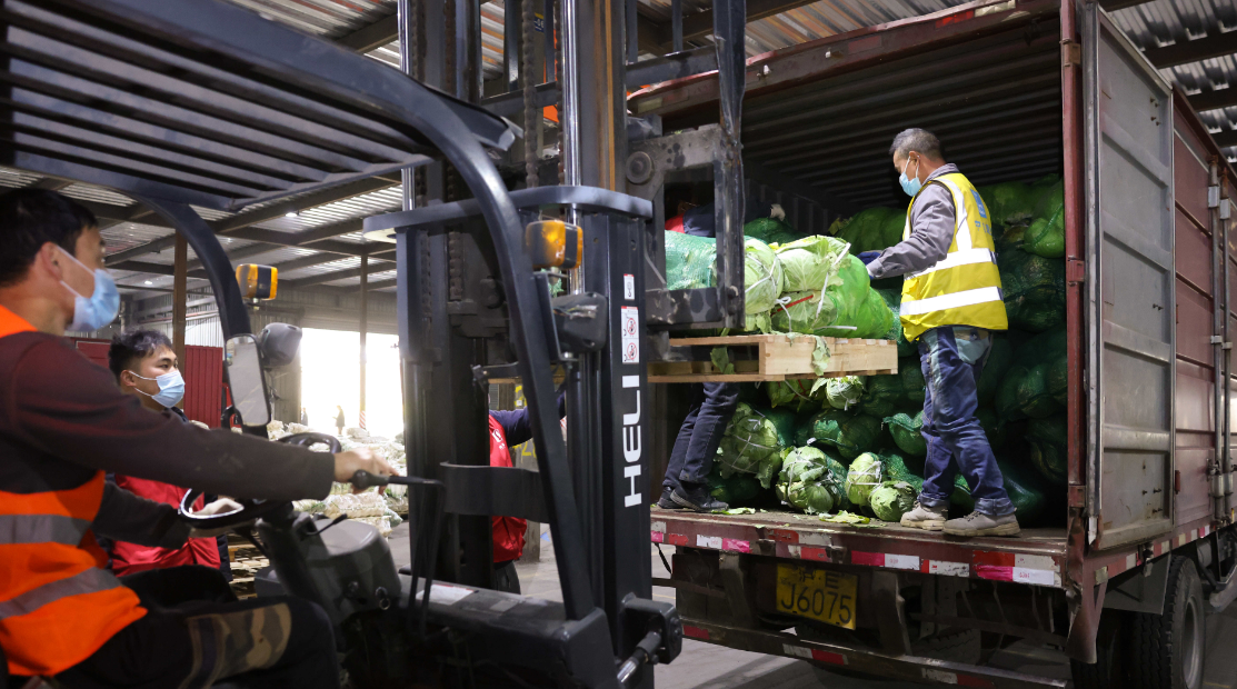 货车被撞至附近路中分隔草丛,其间再撞毁最前方的士,现场蔬菜散落一地,36岁姓刘货车司机手部受伤,清醒送院。