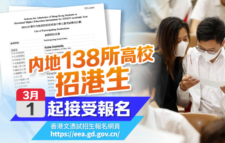 教育局今日(26日)提醒,内地高校招收香港中学文凭考试学生计划(文凭试收生计划)将于3月1日开始接受网上报名。