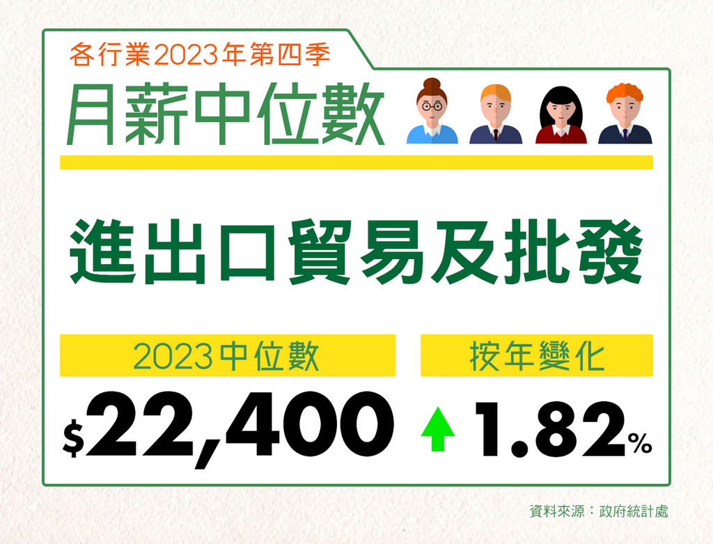 第三则是进出口贸易及批发,月薪中位数为2.24万港元;