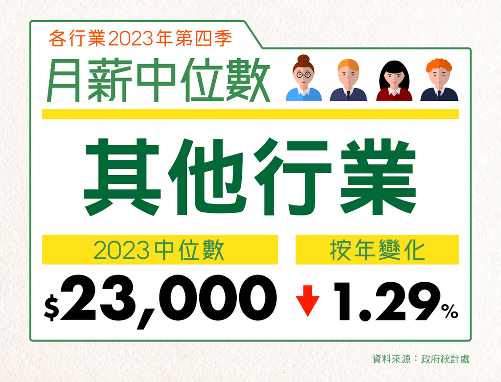 其次为已统计以外的其他行业,月薪中位数为2.3万港元;
