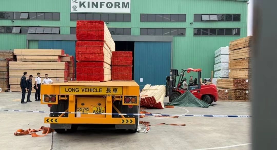 据报,该批木材共150条、每条3米长,由3至4米高位置堕下,压中木厂货车司机。