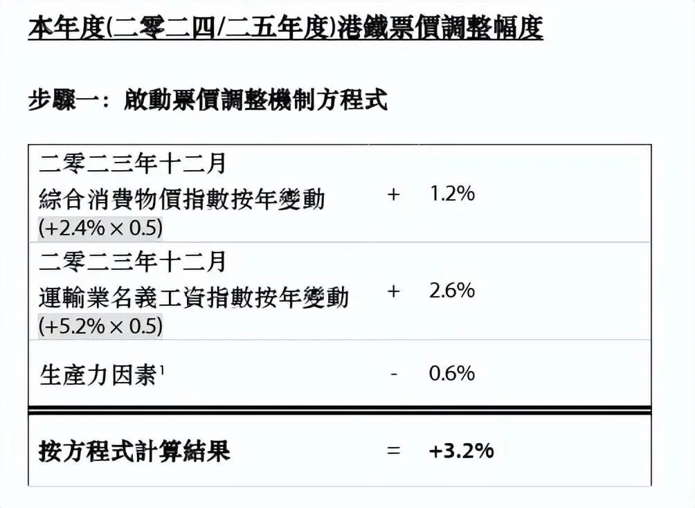 因此结合数据及使用票价调整机制方程式计算,得出结果为+3.2%。
