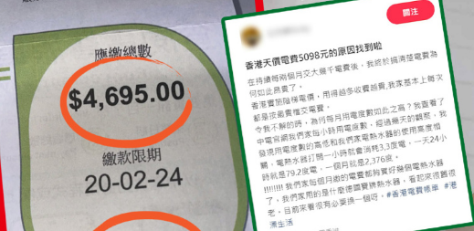 港漂生惊收逾$5,000天价电费单,终发现电热水炉引致