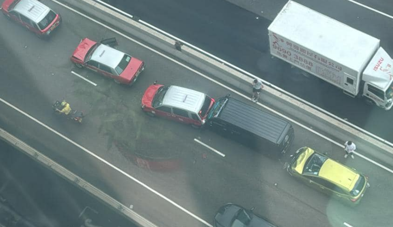 今日(22日)早上8时半,东九龙走廊往观塘方向近新柳街快线,发生五车相撞意外,涉及3部的士、1部轻型货车及1部私家车,意外中有2女3男轻伤。