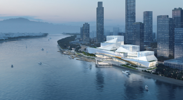 据“南方+”报道,白鹅潭大湾区艺术中心位于广州市荔湾区白鹅潭畔三江交汇处,是集广东美术馆、广东省非物质文化遗产馆、 广东文学馆于一体的重大标志性公共文化设施,由中国工程院何镜堂院士领衔团队设计,总建筑面积超14万平方米,总展陈面积达4万平方米,外形酷似一艘停泊在珠江岸边的轮船,寓意着满载岭南文化艺术宝盒的巨轮即将扬帆起航。