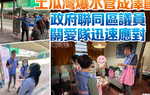 土瓜湾爆水管成泽国,政府联同区议员关爱队迅速应对