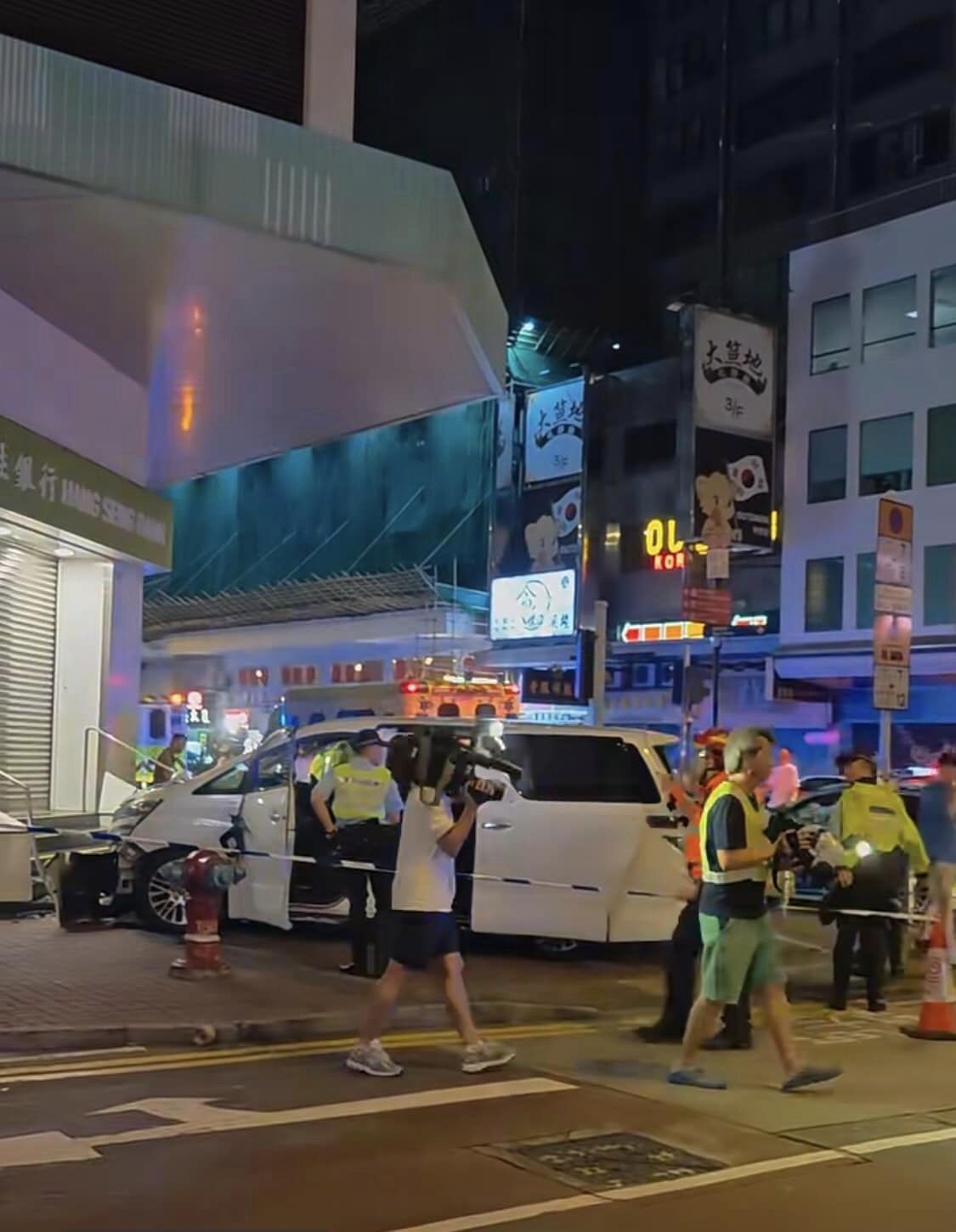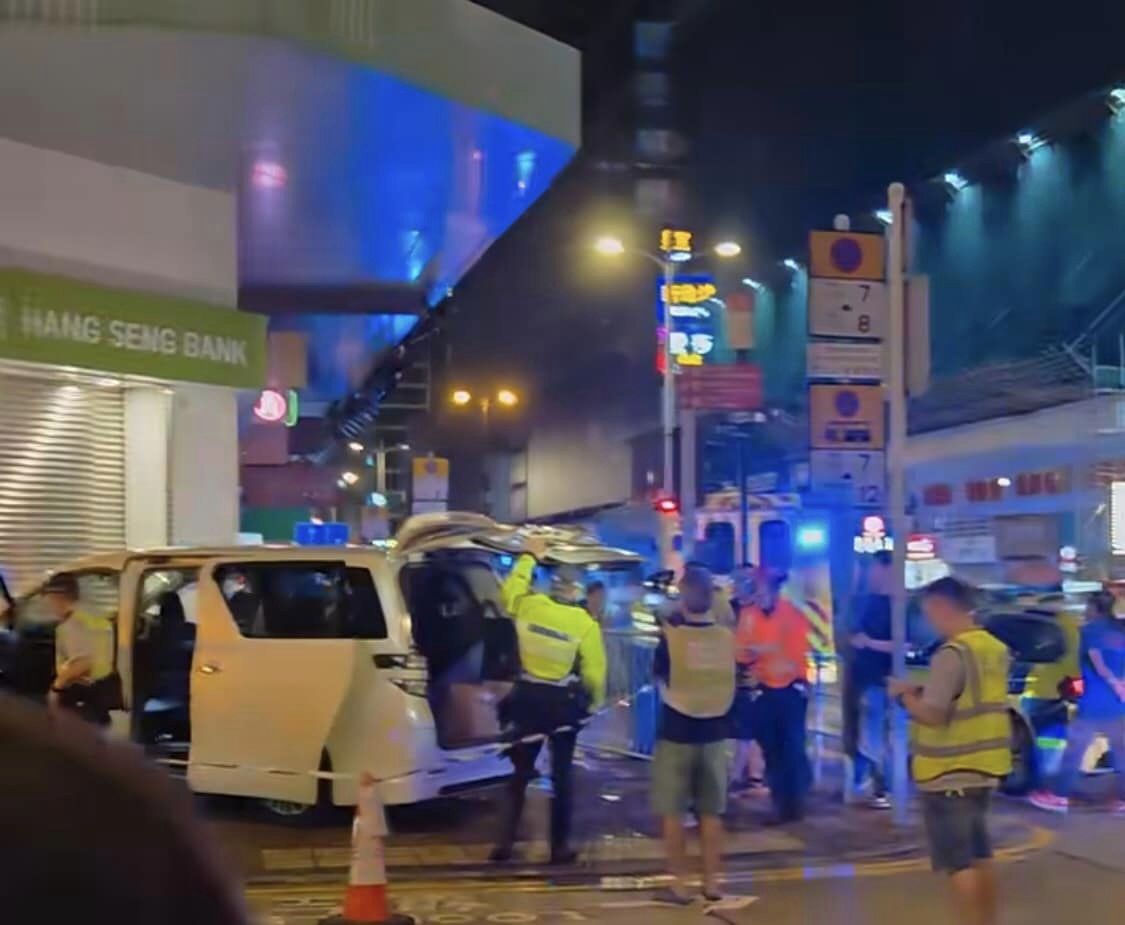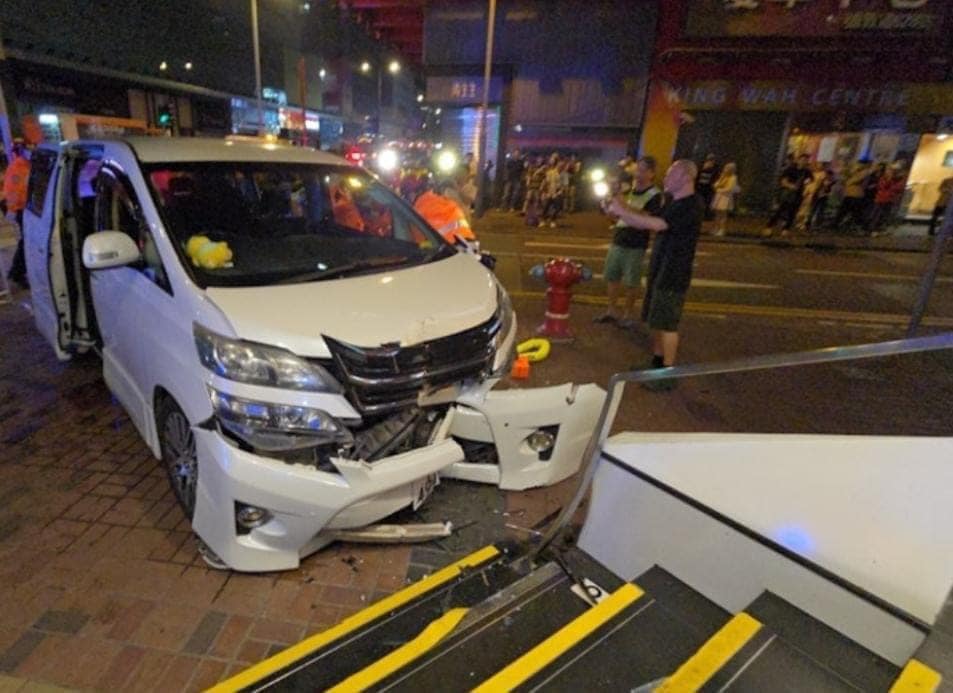 旺角私家车剷行人路撼银行,撞倒途人酿6伤!