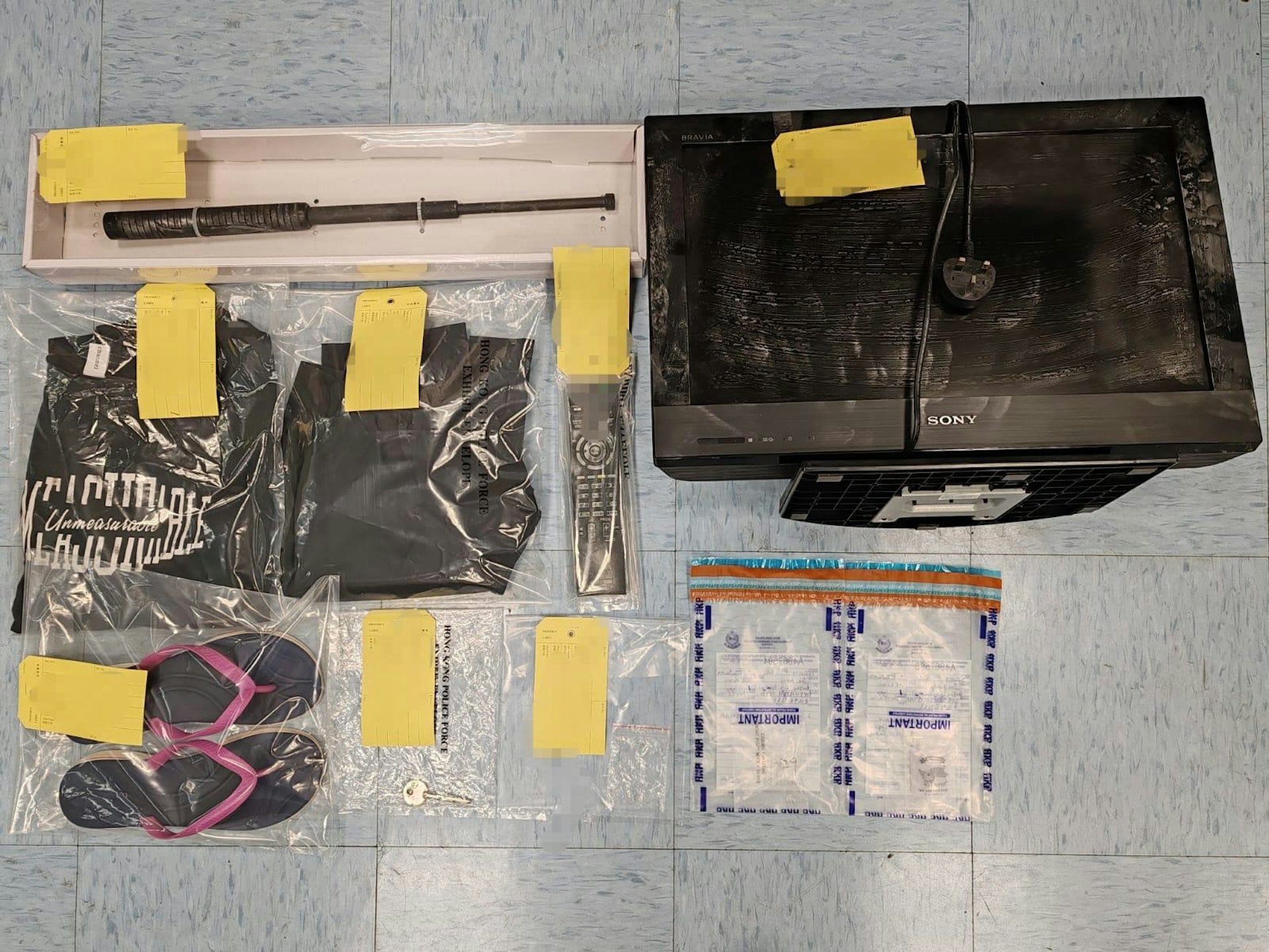 葵涌分区特遣队人员经深入调查后,锁定一名可疑女子,怀疑女子较早前从受害人的信箱内偷去受害人的信件及单位门匙。人员昨日(11日)晚上约8时,在同邨一楼宇内截获该名女子及其男友人,搜查其住所并于住所内起回涉案赃物,即被偷去的电视机及受害人的单位后备门匙,同时亦在单位内检获一支伸缩棍及少量怀疑“冰”毒。该名44岁刘姓本地女子因涉嫌爆窃、盗窃、管有攻击性武器及管有危险药物被捕。