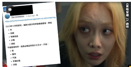 在英国伦敦和香港都设有办事处的“Charlton House Wealth Management”,去年12月的研究发现,伦敦除了本地生产的牛奶和苹果等外,米、鸡蛋、鸡柳、1公升樽装水、番茄,这些主食通通贵过香港。 另外,虽然香港的汽油比英国贵,但公共交通和的士服务都明显比伦敦便宜。