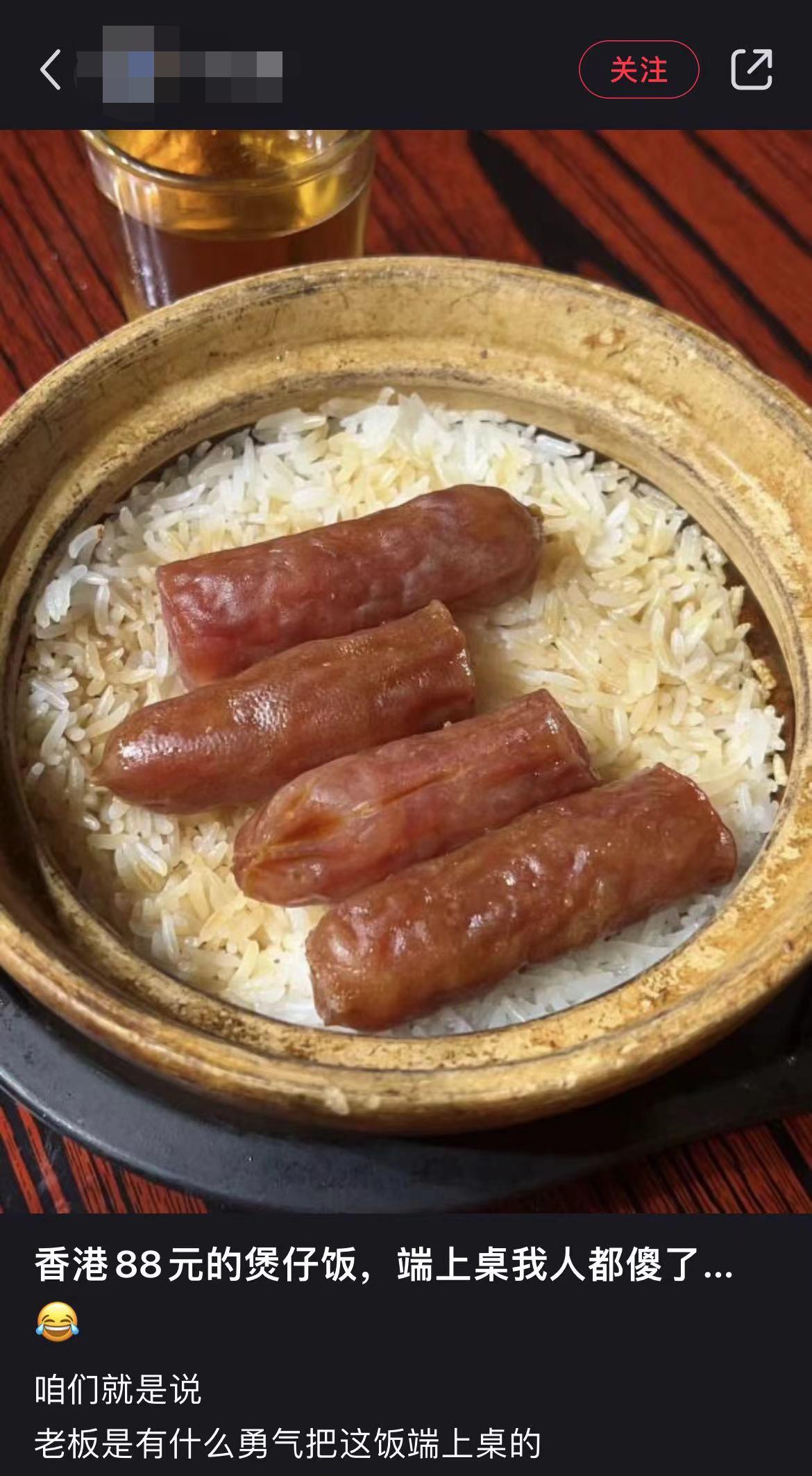 内地男买88元煲仔饭疑中伏 只见白饭加4腊肠