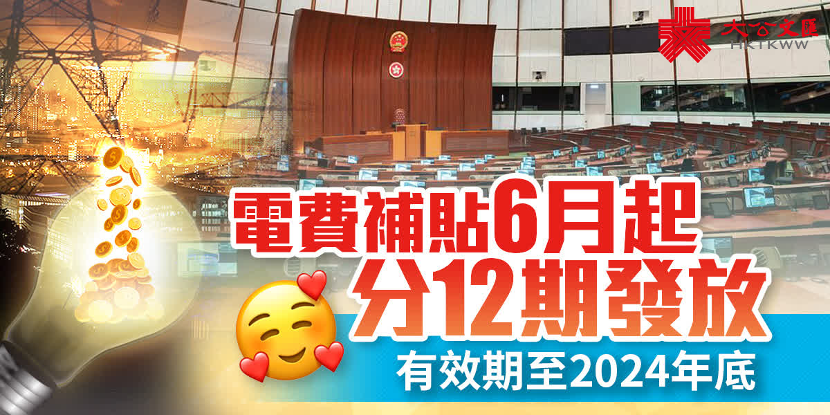 由今年6月开始,政府会续11个月,在每月首日向当天是中电或港灯的电住用户户口注入80元的电费补贴,并在第12个月注入120元的电费补贴,总数共1000元。