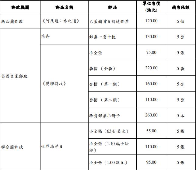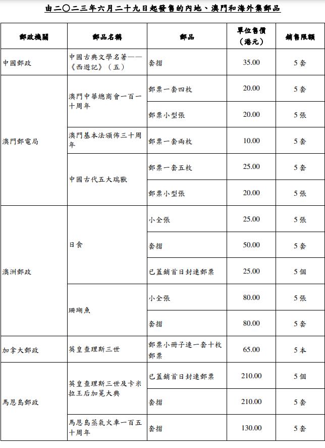 香港邮政今日(26日)公布,由中国邮政、澳门邮电局及其他海外邮政机关,包括澳洲、加拿大、马恩岛、新西兰、英国和联合国发行的精选集邮品,将于29日(星期四)起发售。