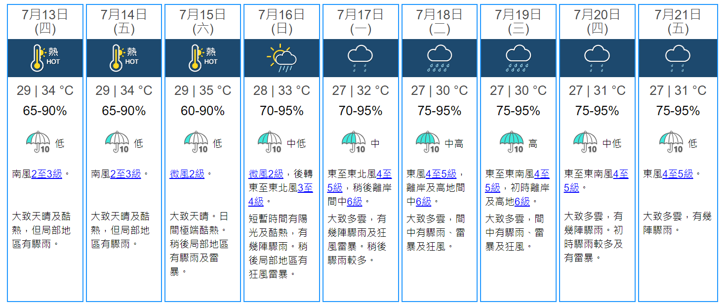 天文台九天天气预报。