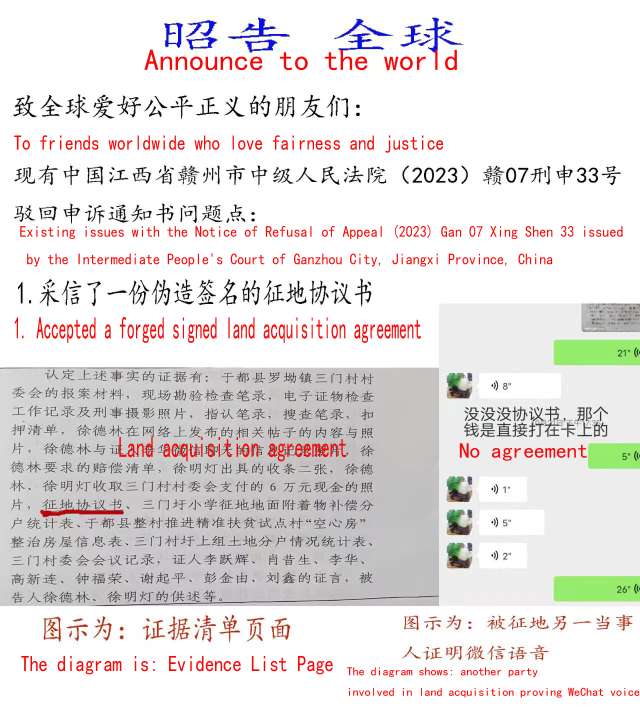其次,现在讲第二个财务的问题,既然说到这个财务,那“财”肯定是有价值的对不对,价值又是以数字来体现的,但在这个本案中,无论征地与拆除土地房均没有权威有效的政策依据来支持计算金额,并且村委会原班子,还采用伪造征地协议书签名和伪造《三门村“空心房”整治拆除协议书》签名,相关法律是规定,伪造签名的合同或协议是没有法律效力的,所以没有协议书和政策依据,那就请问法官拿什么标准来计算认定敲诈勒索数额?另外,判决书证据清单中还隐瞒了《三门村“空心房”整治拆除协议》这个文件,隐瞒了这份文件就等于是隐瞒了强拆村民2栋土坯房损毁不计其数的财产事实,大伙觉得这个计算数额还准确不?