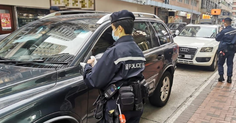 警方油尖区内打击违例泊车,派422张“牛肉乾”