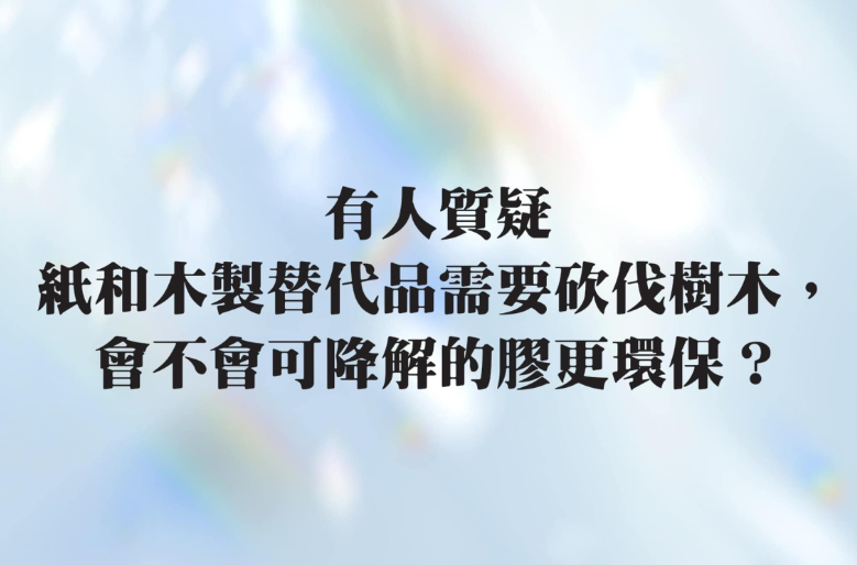 对于有说法指,纸和木制的替代外卖餐具亦需要砍伐树木,改用可降解的塑胶可能更加环保,环境及生态局指一些声称“可降解”的塑胶产品,很多在堆填区内厌氧环境,或是在海洋环境中都不能完全降解,而且还会分裂成为微塑胶,威胁人类和生态环境。这些“可降解”塑胶的材质,亦与普通塑胶不一样,因此不能与普通塑胶一同回收处理。
