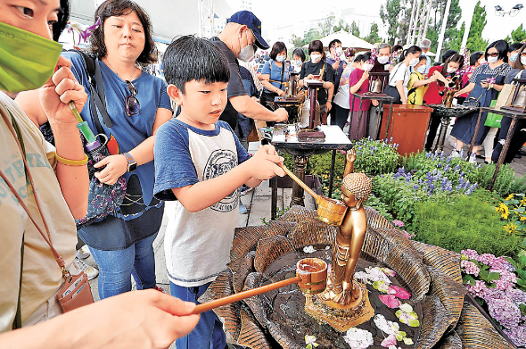每年农曆四月初八是佛祖释迦牟尼的诞辰。佛诞又称“浴佛节”,相传佛祖出生时,天上有九龙吐水,为他洗浴圣身。如今每逢佛诞,善信会以香花淨水灌沐佛身,以表祝贺与供奉,寓意以佛祖智慧,洗涤污浊,淨化心灵。