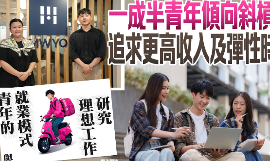 有见越来越多青年倾向自由工作或斜槓族,有调查研究发现,14.8%受访青年没有全职工作,当中近五成希望可藉此赚取更多收入,及逾三成追求弹性安排时间。