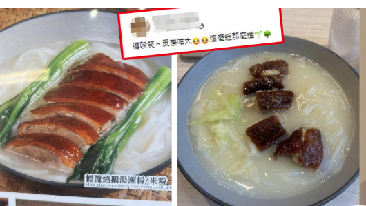 餐厅烧鹅濑粉与餐牌图落差大 食客嬲爆扬言无下次