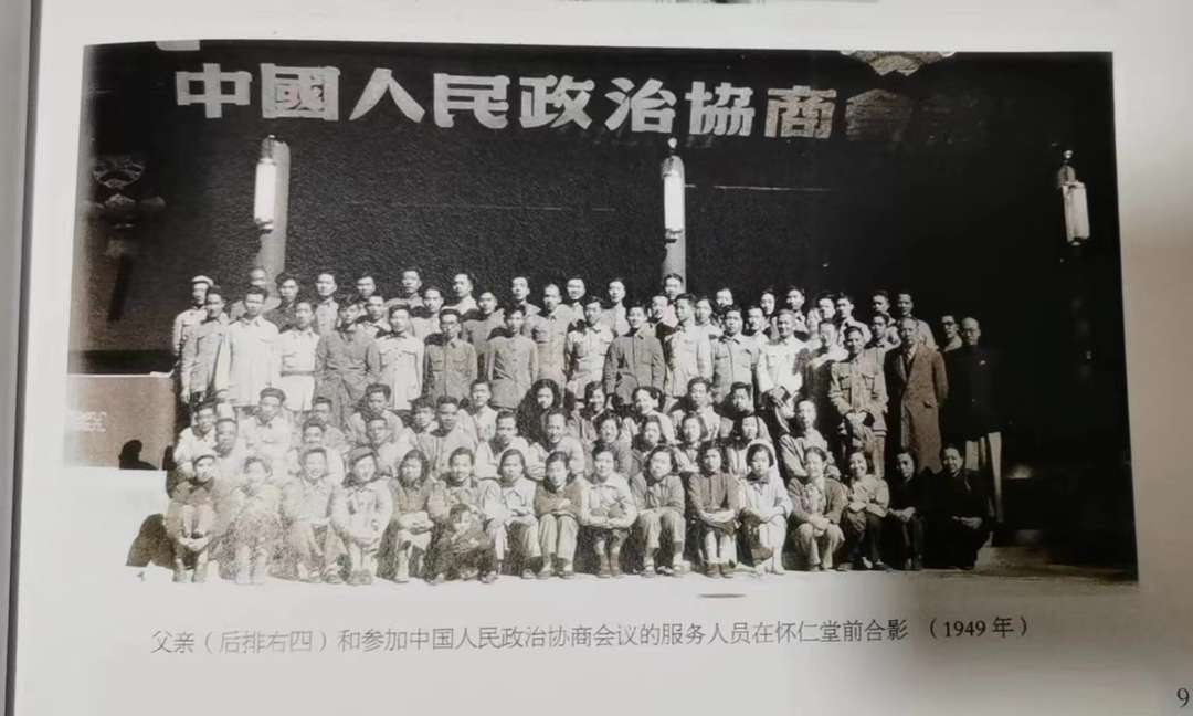 刘歌一直保存着父亲刘春1949年参加第一届政协会议时,与内蒙古自治区政协代表的合影照。左起:王悦丰、王再天、特木尔巴根、刘春、乌兰夫、王逸伦、朋斯克。