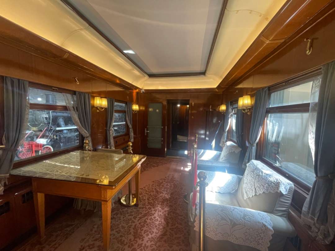 这辆公务车有着特殊的历史地位,它是毛泽东主席在1950年至1975年间使用的公务车,还曾被称为“流动的中南海”。其由原民主德国在20世纪50年代制造,车辆全长达到24.5米,车内设施完备,设有主席的主卧室、副卧室、卫浴室,还有警卫、秘书、乘务人员用房和设备间。其中约20平方米的会议室十分引人注目,内部有沙发、桌椅和欧式床榻。在那个年代,毛主席乘坐火车外出视察时,多在此处接见沿途省、市的党政军领导,并召开重要会议。