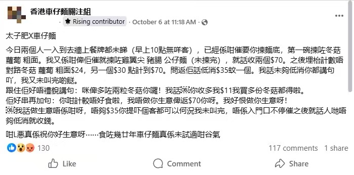 食咗几十年车仔面未试过咁谷气!香港食客控诉人气面店:催单 + 乱收费 + 赶客